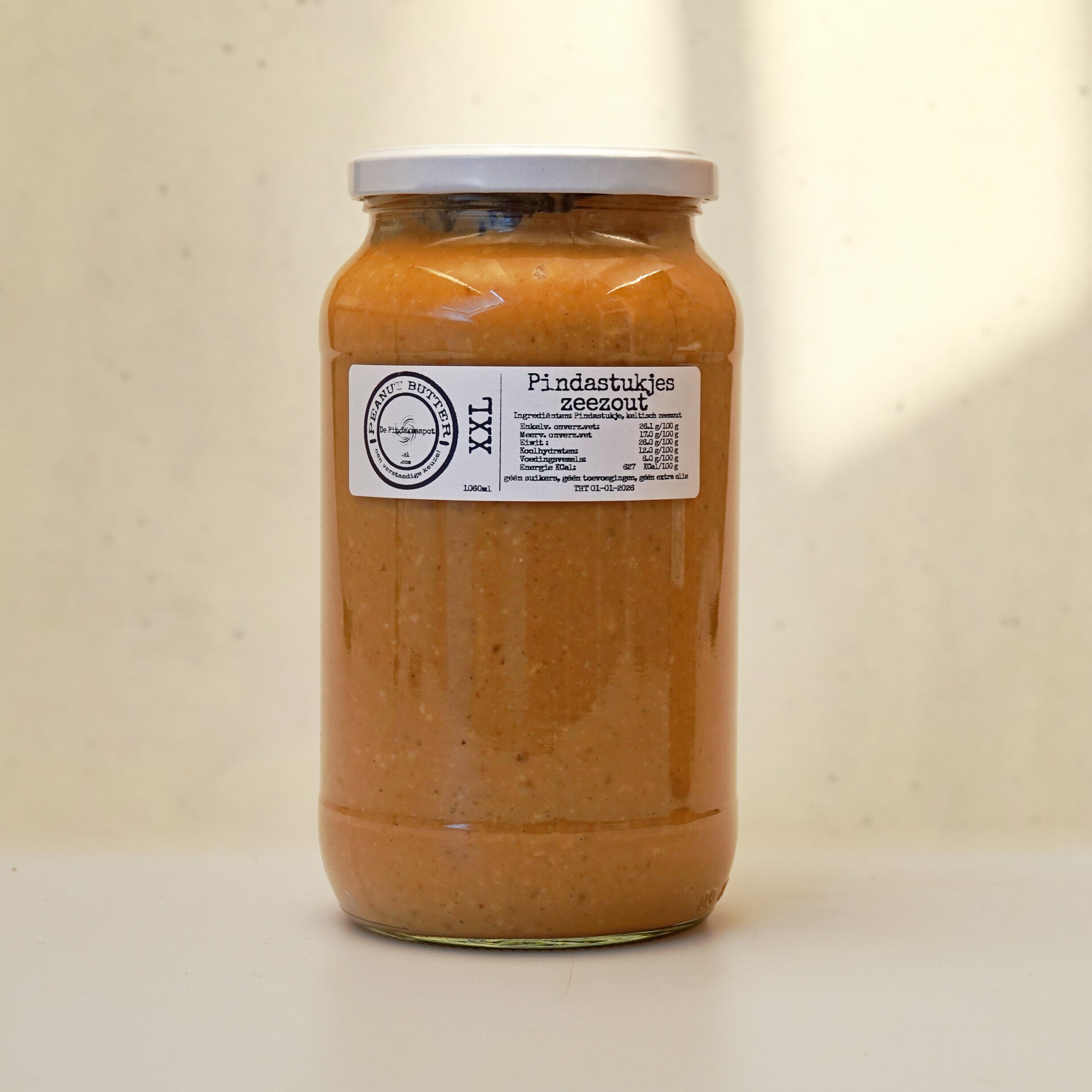 Amerikaanse pinda's grof gemalen.géén suikers, géén toevoegingen, géén extra olie.